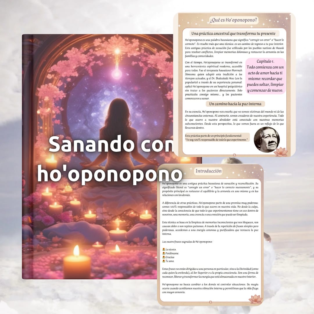 Sana, libera y transforma tu vida emocional y espiritual con esta poderosa herramienta basada en el ancestral método hawaiano de Ho’oponopono. Este paquete incluye un cuaderno digital interactivo más 8 regalos especialmente diseñados para acompañarte en tu camino de autosanación, perdón y armonía interior.