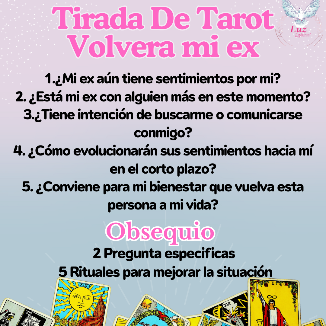 Descubre si tu ex aún siente algo por ti, si está con alguien más y si volverá. Incluye 5 preguntas clave, 2 adicionales de regalo y 5 rituales para mejorar tu situación emocional.